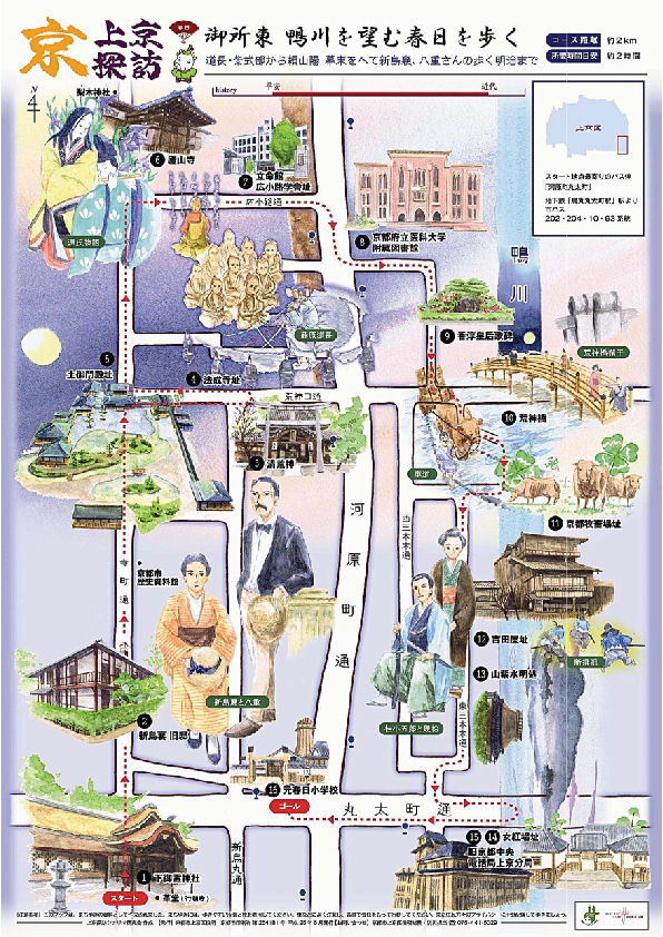 | @京都 御所東 鴨川を望む春日を歩く 藤原道長の平安時代から 桂小五郎の明治までを歩きます。 |
